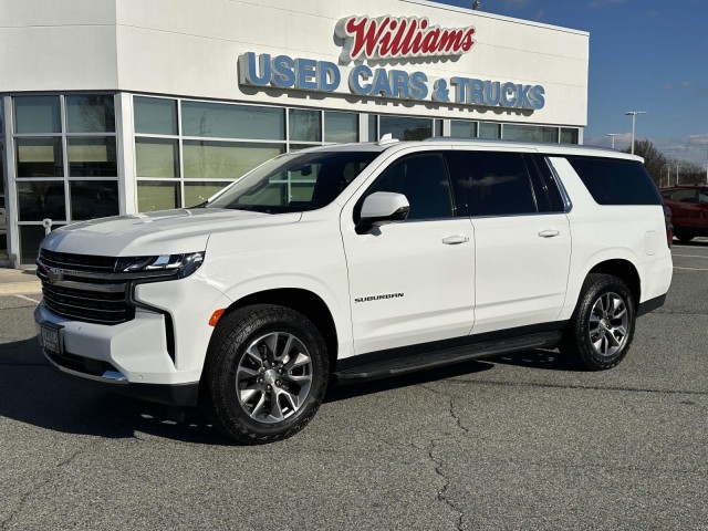 We would like to thank you for visiting our website and considering us for the purchase of your next pre-owned vehicle. It is our goal to provide you with an excellent purchase and ownership experience. We can help you find exactly what you are looking for. We know your time is valuable. We are sure you will find our site a fast and convenient way to research and find a vehicle that's right for you. If we can be of any assistance while visiting us online, please send us an email and we will promptly reply. Why does this vehicle look so great? The CARFAX report shows it's only been owned by one owner. In their original incarnation, SUVs were chiefly owned by folks who valued "utility" above "sport." Not anymore! The Chevrolet Suburban LT redefines the SUV and makes the perfect "all around" family companion. Is it possible to fall in love with a vehicle? It is when your vehicle is as prestige as the Chevrolet Suburban. With 4WD, you can take this 2022 Chevrolet Suburban LT to places roads don't go. It's all about the adventure and getting the most enjoyment out of your new ride. This Chevrolet Suburban is beautiful and the interior is clean with virtually no flaws. This highly refined Chevrolet Suburban comes with exciting features you'd expect in a vehicle twice the price. Added comfort with contemporary style is the leather interior to heighten the quality and craftsmanship for the Chevrolet Suburban LT. Amazing wheels help set this Chevrolet Suburban apart from other vehicles like it. Make sure you visit our entire inventory at www.williamsused.com