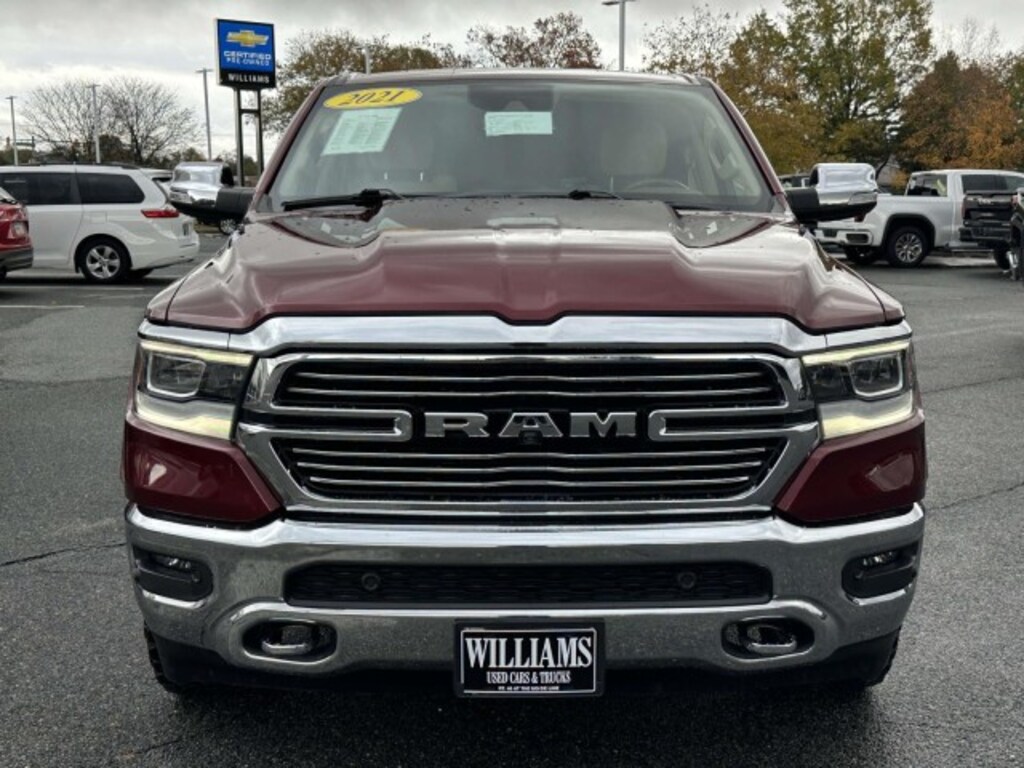 We would like to thank you for visiting our website and considering us for the purchase of your next pre-owned vehicle. It is our goal to provide you with an excellent purchase and ownership experience. We can help you find exactly what you are looking for. We know your time is valuable. We are sure you will find our site a fast and convenient way to research and find a vehicle that's right for you. If we can be of any assistance while visiting us online, please send us an email and we will promptly reply. This Ram includes: ADVANCED SAFETY GROUP Lane Departure Warning Automatic Parking Lane Keeping Assist Back-Up Camera Adaptive Cruise Control LARAMIE LEVEL 2 EQUIPMENT GROUP WiFi Hotspot Heated Rear Seat(s) Variable Speed Intermittent Wipers Remote Engine Start HD Radio Navigation System Intermittent Wipers Rear Parking Aid AM/FM Stereo Satellite Radio Bluetooth Connection Blind Spot Monitor Premium Sound System Telematics Requires Subscription Cross-Traffic Alert Remote Trunk Release Pass-Through Rear Seat Rain Sensing Wipers ENGINE: 5.7L V8 HEMI MDS VVT ETORQUE Gas/Electric Hybrid 8 Cylinder Engine PROTECTION GROUP Tow Hooks DELMONICO RED PEARLCOAT CHROME APPEARANCE GROUP Tow Hooks Running Boards/Side Steps 3.92 REAR AXLE RATIO ANTI-SPIN DIFFERENTIAL REAR AXLE Locking/Limited Slip Differential WHEELS: 20" Tires - Front Performance Aluminum Wheels Tires - Rear Performance *Note - For third party subscriptions or services, please contact the dealer for more information.* If you're going to purchase a pre-owned vehicle, why wouldn't you purchase one with CARFAX one-owner report. In just a matter of seconds, this Ram 1500 turns into a convertible for extra fun on a beautiful sunny day. This Ram 1500 Laramie is for the discerning driver who demands the utmost of his vehicle. With 4WD, you can take this 2021 Ram 1500 Laramie to places roads don't go. It's all about the adventure and getting the most enjoyment out of your new ride. It's not often you find just the vehicle you are looking for AND with low mileage. This is your chance to take home a pre-owned and barely driven Ram 1500. Marked by excellent quality and features with unmistakable refined leather interior that added value and class to the Ram 1500 Laramie. Let's be honest, not everyone wants to set a course blindly into the dark. For those of us that don't, there are vehicles like this with stellar navigation systems. Premium paint with no visible signs of damage or degradation is another reason to consider this Ram 1500 Laramie. The upgraded wheels on this vehicle offer improved handling and an attractive appearance. Make sure you visit our entire inventory at www.williamsused.com
